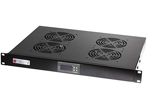 TECHLY Professional 023363 Gruppo 4 Ventole 1U per Rack 19" con Termostato LED Nero Nero