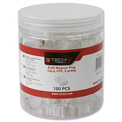 TECHLY Professional 028894 Confezione 100 Plug RJ45 UTP per Cavo Rigido Cat.6 Trasparente