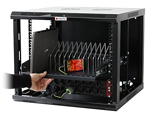 TECHLY Professional 107753 Mensola Estraibile 14 Alloggiamenti di Ricarica per Smartphone Tablet Nero