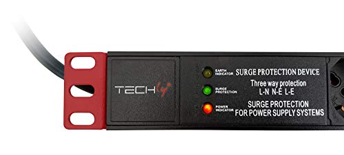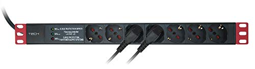 TECHLY Professional 109603 Multipresa 7 Posti da Rack 19" con Filtro di Protezione 3 LED Spina Italiana 1U Nero