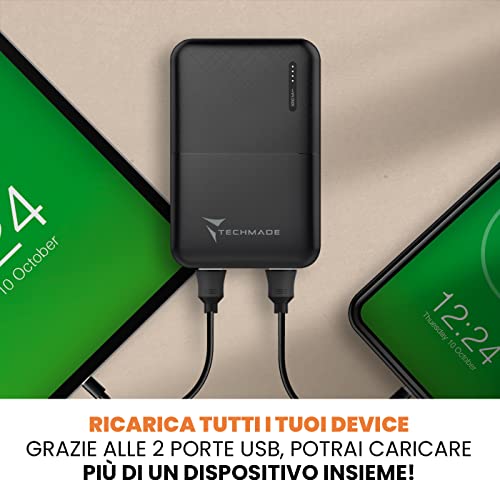Techmade Power Bank 5000mAh, 2 porte USB e 1 USB-C. Sottile & Compatto Caricabatterie Portatile Carica Rapida Batteria Esterna Powerbank per iPhone Samsung Huawei Smartphone