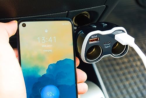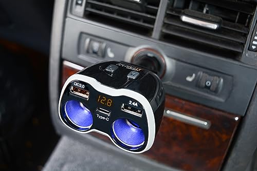 Technaxx sdoppiatore per accendisigari (12V/24V), Adattatore per auto con 2x USB e una porta USB tipo C e con schermo LED TX-163