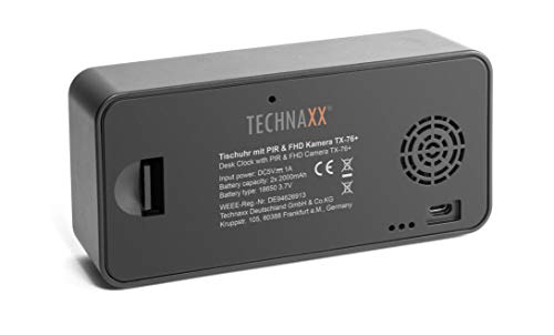 Technaxx Tx-76+ 4800 Orologio da Tavolo con Videocamera Fullhd Integrata e Sensore Pir Che Rileva il Movimento per Una Maggiore Sicurezza