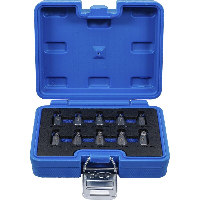 Permette di svitare le viti con testa difettosa Adatto per esagoni interni, Profilo a T (per Torx), poligonale interno (per XZN) ecc. Punte estrattrici con azionamento esagonale disponibili nelle seguenti misure 3 - 4 - 5,5 - 6 - 7 - 8 - 9 - 10 - 11 mm Adatto anche per viti in pollici 1/8 - 5/32 - 3/16 - 7/32 - 1/4 - 9/32 - 5/16 - 11/32 - 3/8 - 13/32 Azionamento esagonale 13 mm Peso del tessuto 0.547 Dimensioni dell'imballaggio 1 Peso lordo 547 g