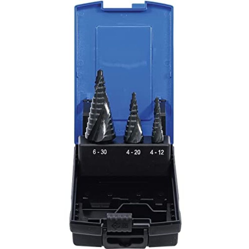 Acciaio HSS 6542 rivestito di nitruro Oggetto della fornitura: Punta a gradino Ø 4-12 mm Punta a gradino Ø 4-20 mm Punta a gradino Ø 6-30 mm Imballaggio adatto per essere appeso alla parete Ja Peso del tessuto 0.414 Dimensioni dell'imballaggio 1 Peso lordo 414 g