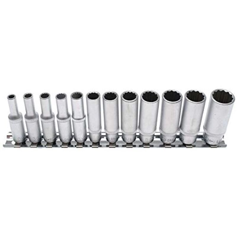 Juego de llaves de vaso 12 caras, largas | entrada 6,3 mm (1/4) | medidas en pulgadas | 12 piezas