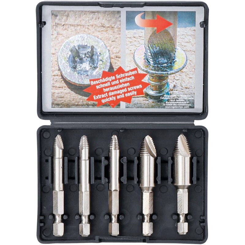 Per svitare e rimuovere in modo più rapido e facile viti rotte e danneggiate, ma anche viti incassate con teste difettose Rimuove viti con intaglio piatto e a croce con profilo PH e PZ, come pure altre viti con tipi di profili diverso Adatto a tutti i trapani più comuni con regolazione del numero di giri Attacco esagono esterno 6,3 mm (1/4) In cassetta di plastica Oggetto della fornitura: 2 estrattori per viti spezzate misura 0, per 6 mm, numero di giri 700 - 800 g/min 1 estrattore per viti spezzate misura 1, per 8 mm, numero di giri 600 - 700 g/min 1 estrattori per viti spezzate misura 2, per 10 mm, numero di giri 500 - 600 rpm 1 estrattore per viti spezzate misura 3, per 12 mm, numero di giri 400 - 500 g/min Profilo di azionamento Esagono esterno Imballaggio adatto per essere appeso alla parete Ja Dimensione profilo di azionamento, metrico 6,3 mm Peso del tessuto 0.16 Dimensione del profilo di azionamento, imperiale 1/4 Dimensioni dell'imballaggio 1 Peso lordo 160 g