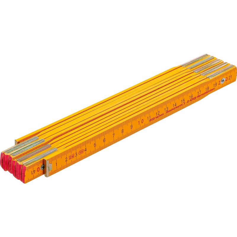 Per l'uso in cantiere, in officina, a casa e molto altro ancora con linguette elastiche e giunti interni in acciaio giunti rivettati Estremità di elementi in acciaio per una maggiore robustezza può essere bloccato nella posizione angolata di 90 per ottenere un angolo retto o completamente aperto a 180 per ottenere un righello dritto con scala in mm su entrambi i lati sul bordo superiore e inferiore Scala divisioni in nero con grandi numeri decimali stampati in nero interamente dipinto di giallo per trovarlo facilmente nella cassetta degli attrezzi Classe di precisione: III Numero di elementi: 10 Peso lordo: 108 g Lunghezza totale: 2 - 8 m Materiale: legno, betulla