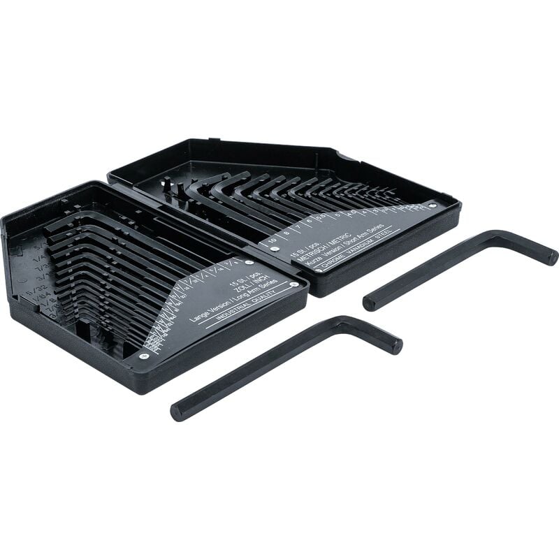 In cassetta da lavoro Oggetto della fornitura: Chiave ad angolo con esagono incassato 0,7 mm, lunghezza della lama (lato corto): 14 mm, lunghezza lama (lato lungo): 40 mm Chiave ad angolo con esagono incassato 0,9 mm, lunghezza della lama (lato corto): 14 mm, lunghezza lama (lato lungo): 40 mm Chiave ad angolo con esagono incassato 1,3 mm, lunghezza della lama (lato corto): 14 mm, lunghezza lama (lato lungo): 42 mm Chiave ad angolo con esagono incassato 1,5 mm, lunghezza della lama (lato corto): 15 mm, lunghezza lama (lato lungo): 45 mm Chiave ad angolo con esagono incassato 2 mm, lunghezza della lama (lato corto): 18 mm, lunghezza lama (lato lungo): 53 mm Chiave ad angolo con esagono incassato 2,5 mm, lunghezza della lama (lato corto): 20 mm, lunghezza lama (lato lungo): 57 mm Chiave ad angolo con esagono incassato 3 mm, lunghezza della lama (lato corto): 24 mm, lunghezza lama (lato lungo): 63 mm Chiave ad angolo con esagono incassato 4 mm, lunghezza della lama (lato corto): 27 mm