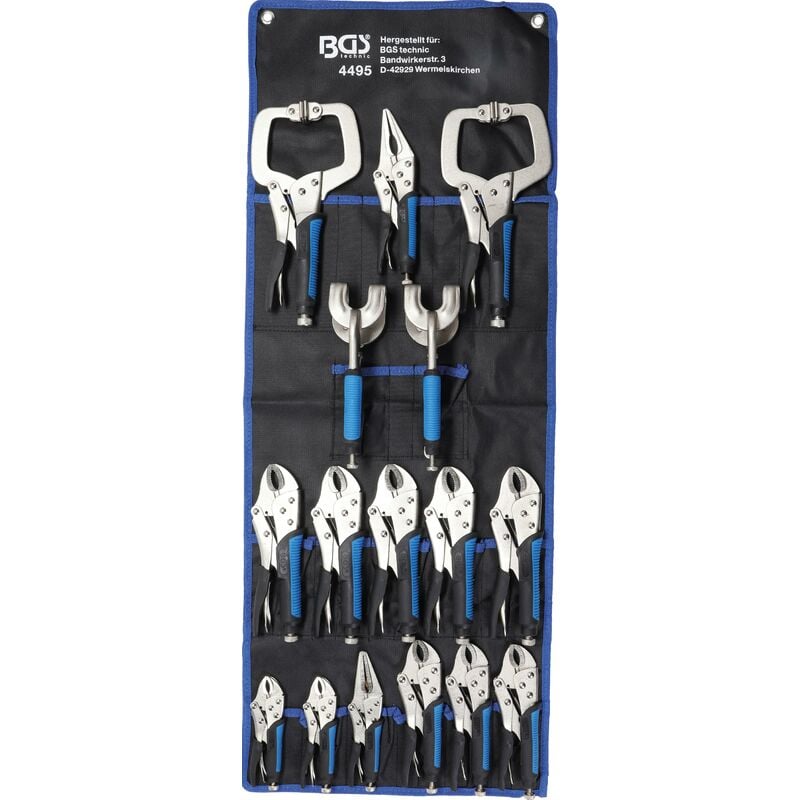 Tutte le pinze sono dotate di impugnature antiscivolo Oggetto della fornitura: 3 pinze autobloccanti di medie dimensioni, 185 x 55mm 5 pinze autobloccanti di grandi dimensioni, 215 x 65 mm 2 pinze autobloccanti di piccole dimensioni, 140 x 40 mm 2 pinze a morsetto per saldature, 225 x 70 mm 2 pinze autobloccanti con ganasce, 280 x 135 mm 1 pinza autobloccante a punta di medie dimensioni, 220 x 55 mm 1 pinza autobloccante a punta di piccole dimensioni, 170 x 45 mm