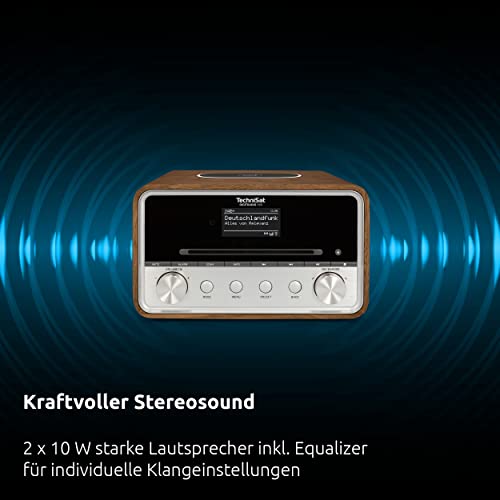 TechniSat DIGITRADIO 586 - Radio ibrido DAB+ (radio internet, FM, Bluetooth, Spotify, ricarica wireless, controllo tramite app, OLED, USB, CD, MP3, AUX, 20 W, sistema compatto, telecomando) noce