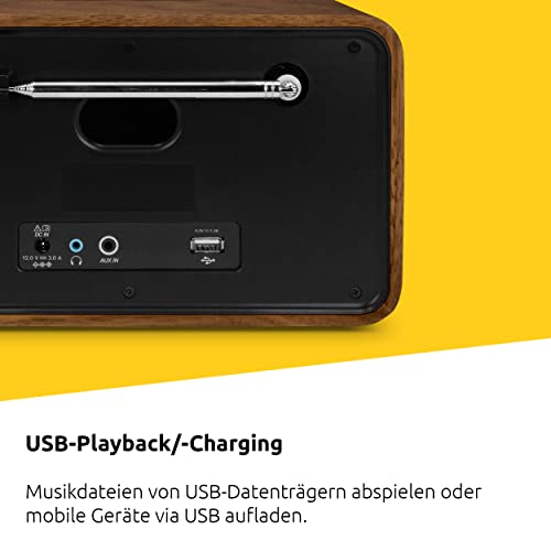 Radio digitale versatile: ricezione di stazioni radio analogiche e digitali tramite FM/DAB/DAB+ o ascolto di radio internet in tutto il mondo. Inoltre, riproduzione di CD o streaming di musica tramite Bluetooth o Spotify