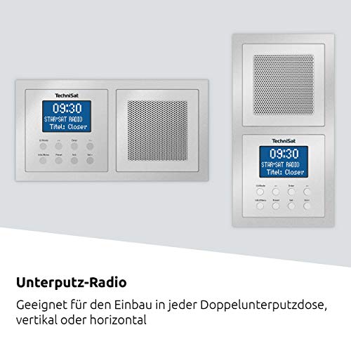 TechniSat DIGITRADIO UP 1 - Radio da incasso DAB+ per installazione in qualsiasi scatola doppia da incasso (DAB, VHF, Bluetooth, Display LCD dimmerabile, Sveglia, Timer di spegnimento, 2 Watt) Argento