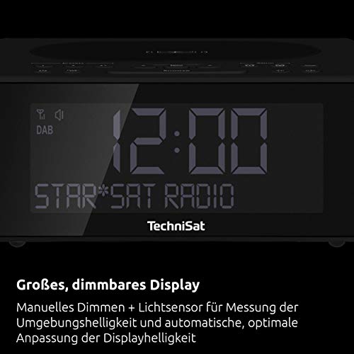 TechniSat DIGITRADIO 52 - Radiosveglia DAB (sveglia, DAB+, FM, funzione snooze, timer di spegnimento, display dimmerabile, funzione di ricarica wireless, altoparlanti stereo 2 W) nero