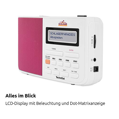 TechniSat Digitradio 210 SCHLAGER Paradiso Edition Radio portatile DAB +/UKW ricerca automatica delle stazioni, Display LCD, 3,5 mm presa per cuffie, Ora, visualizzazione data, bianco