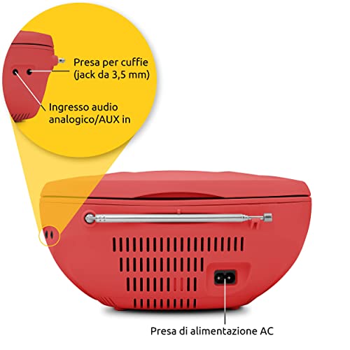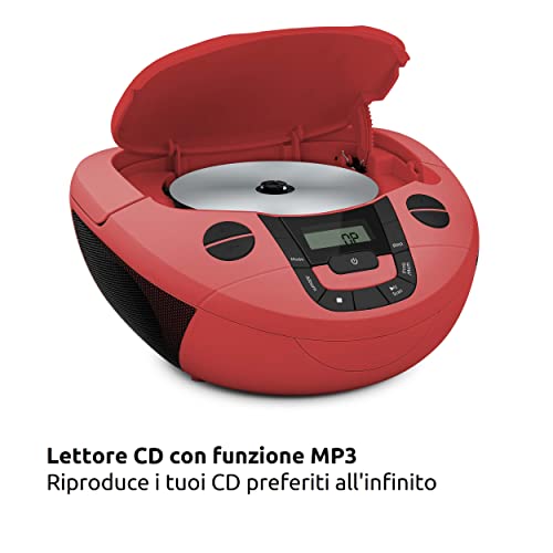 Lettore CD portatile: il dispositivo compatto è leggero e facile da usare grazie ai tasti disposti in modo intuitivo. Il lettore CD integrato riproduce tutti i formati di CD comuni, anche MP3-CD. La radio FM riceve le stazioni radio disponibili in FM
