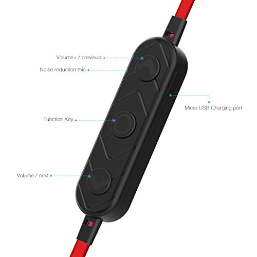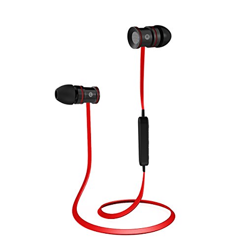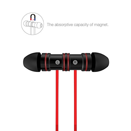 EC Technology Bluetooth Headsets,Wireless Stereo Bluetooth Headphones With Magnet Attraction, Sweatproof V4.1 Sports Earphones with Microphone for iPhone Android Smartphones, Red & Black