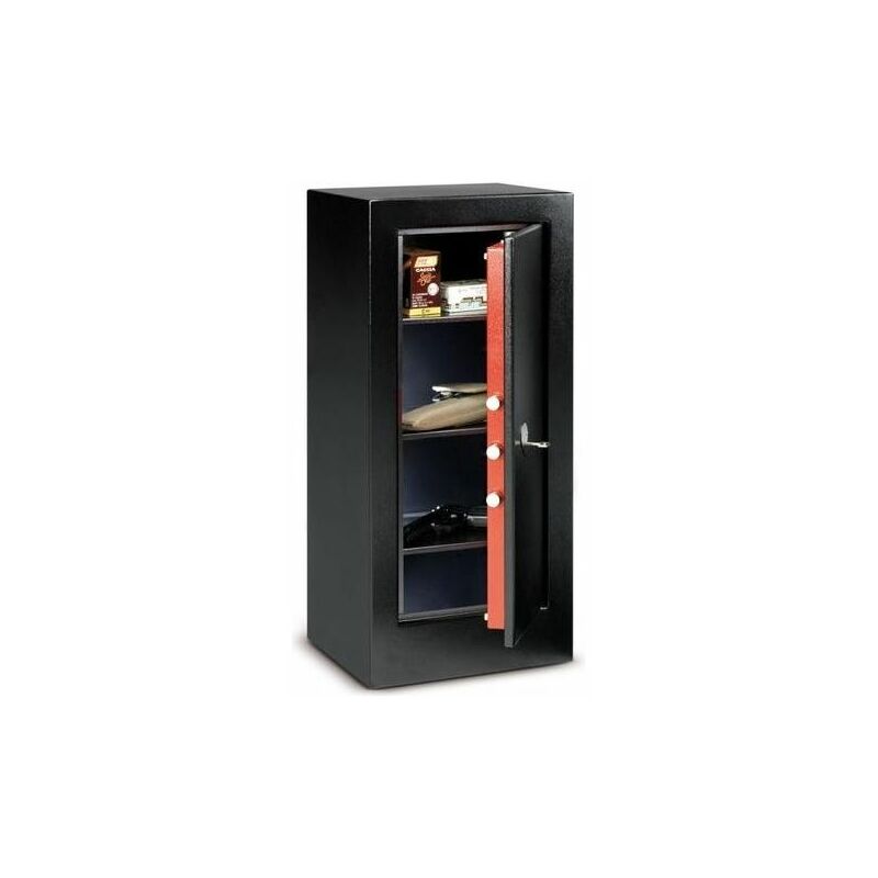 HOME SAFE ''HS/20'' Struttura monoblocco in lamiera d?acciaio dello spessore di 2 mm. Spessore totale del battente 50 mm. Serratura di sicurezza a 6 leve con chiave a doppia mappa (2 chiavi in dotazione). Estrazione della chiave impossibile a catenacci rientrati. 5 catenacci in acciaio nichelato ¥ 22 mm. 3 ripiani interni regolabili in acciaio verniciato. Fori di ancoraggio sulla base e sullo schienale (4+4). Verniciatura a polvere termoindurente con essicazione a forno. Misure esterne: Larghezza 36,5 cm Lunghezza 32 cm Altezza 80 cm Peso:30 Kg