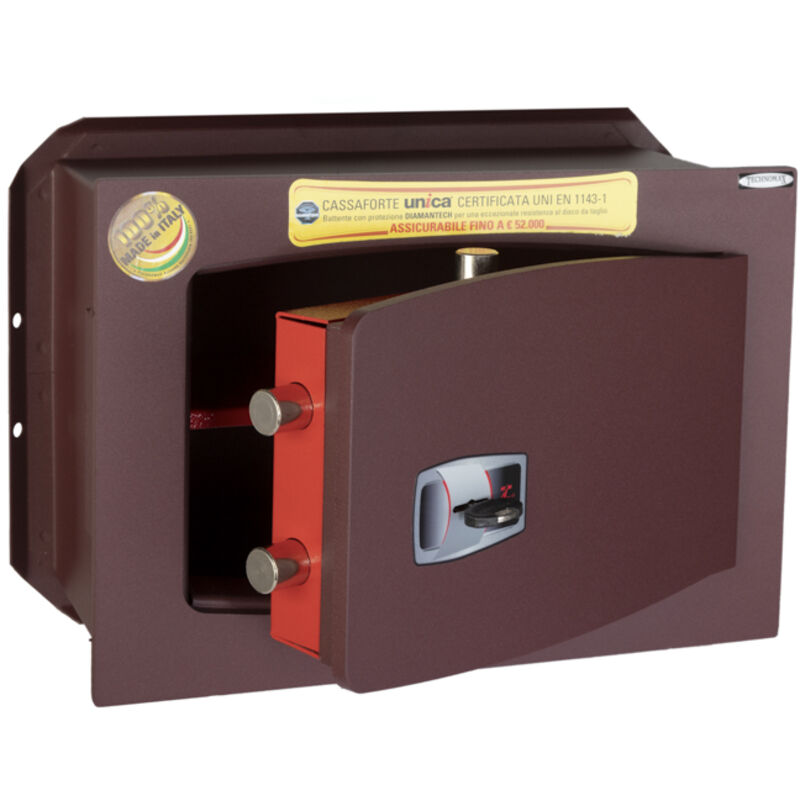 Nata per offrire un prodotto innovativo e di risposta al mercato della sicurezza che in costante evoluzione, Technomax presenta la nuova generazione di casseforti a muro. Il leader europeo di produzione di casseforti e sistemi di sicurezza passivi, si avvale della tecnologia innovativa Diamantech che garantisce un'elevata protezione del battente della cassaforte contro eventuali attacchi effettuati tramite dischi da taglio. Technomax offre questa sicurezza apponendo un pannello di acciaio che contiene conglomerato cementizio ad alta resistenza (nel quale sono inseriti anche speciali inserti anti-taglio) tra la serratura e la porta della cassaforte. CARATTERISTICHE TECNICHE - Frontale e porta in acciaio monoblocco di 10 mm, tagliati al laser. - Spessore totale porta 30 mm. - Protezione del battente tramite pannello contenente conglomerato cementizio ad alta resistenza e speciali inserti antitaglio. - La cassaforte presenta una serratura (certificata UNI EN 1300) di ultima generazione