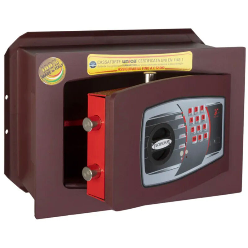 Nata per offrire un prodotto innovativo e di risposta al mercato della sicurezza che in costante evoluzione, Technomax presenta la nuova generazione di casseforti a muro. Il leader europeo di produzione di casseforti e sistemi di sicurezza passivi, si avvale della tecnologia innovativa Diamantech che garantisce un'elevata protezione del battente della cassaforte contro eventuali attacchi effettuati tramite dischi da taglio. Technomax offre questa sicurezza apponendo un pannello di acciaio che contiene conglomerato cementizio ad alta resistenza (nel quale sono inseriti anche speciali inserti anti-taglio) tra la serratura e la porta della cassaforte. CARATTERISTICHE TECNICHE - Frontale e porta in acciaio monoblocco di 10 mm, tagliati al laser. - Spessore totale porta 30 mm. - Protezione del battente tramite pannello contenente conglomerato cementizio ad alta resistenza e speciali inserti antitaglio. - Serratura certificata UNI EN 1300 controllata da un congegno elettronico ad alta