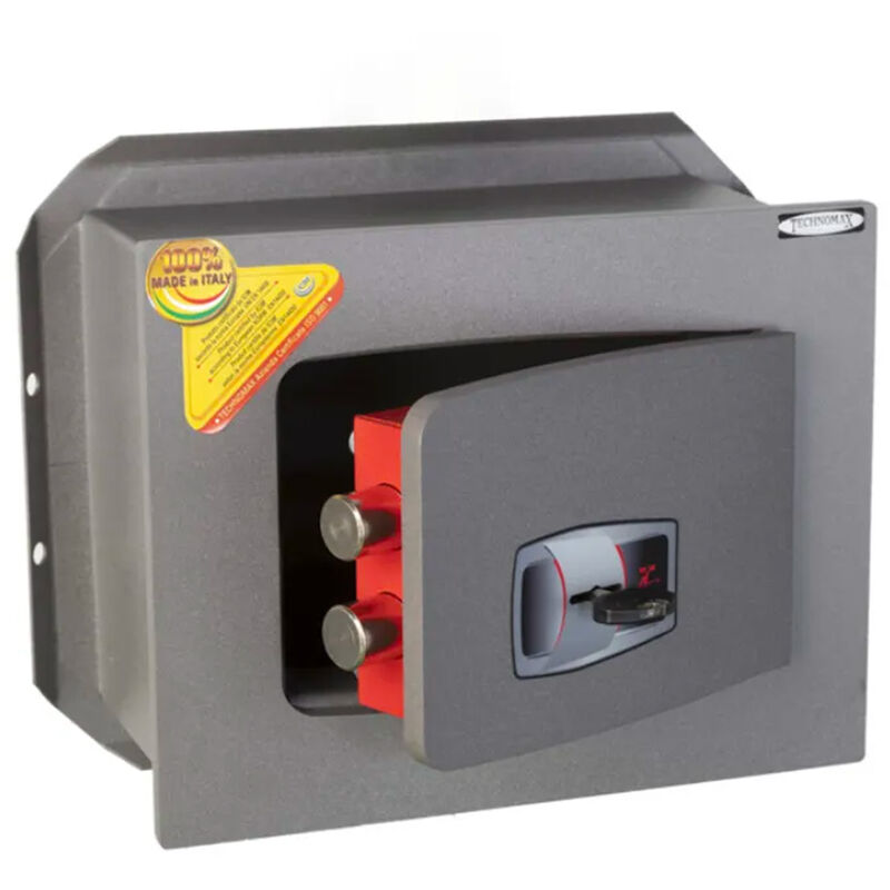 Cassaforte a muro Technomax modello “Technofort Key” modello DK/2 Caratteristiche tecniche: ha il frontale e la porta con uno spessore di mm. 10 Serratura di alta sicurezza di ultima generazione, con 8 leve asimmetriche ed indipendenti Certificata UNI EN 1300 Questo modello si basa sull'utilizzo di nuove leve antipicking oscillanti e mentonnet a profilo speciale che oppongono una eccezionale resistenza agli attacchi portati utilizzando gli ultimi sofisticati sistemi di manipolazione con l'uso di speciali grimaldelli es”attrezzo bulgaro” Chiave a doppia mappa con profilo speciale duplicabile con carta di proprietà, per impedire la duplicazione non autorizzata delle chiavi Estrazione della chiave impossibile a catenacci rientrati Catenacci in acciaio nichelato, girevoli, del Ø di 22 mm Protezione al meccanismo della serratura con piastra in acciaio al manganese Speciali battute della porta per resistere più a lungo ai tentativi di effrazione con mazza Robuste saldature interne