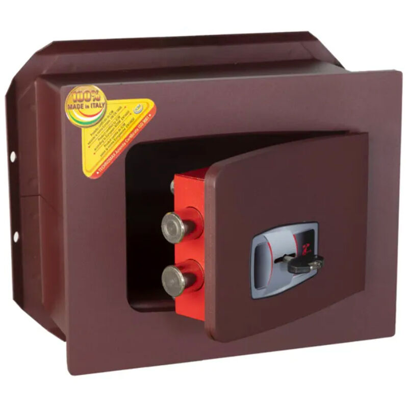 Cassaforte a muro della Technomax “Master Key” modello KM/2 Caratteristiche tecniche: Serratura di alta sicurezza di ultima generazione, con 8 leve asimmetriche ed indipendenti, certificata UNI EN 1300. Si basa sull'utilizzo di nuove leve antipicking oscillanti e mentonnet a profilo speciale che oppongono una eccezionale resistenza agli attacchi portati utilizzando gli ultimi sofisticati sistemi di manipolazione con l'uso di speciali grimaldelli es”attrezzo bulgaro”. Chiave a doppia mappa con profilo speciale duplicabile con carta di proprietà, per impedire la duplicazione non autorizzata delle chiavi. Estrazione della chiave impossibile a catenacci rientrati. Catenacci in acciaio nichelato, girevoli, del Ø di 22 mm. Protezione al meccanismo della serratura con piastra in acciaio al manganese. Speciali battute della porta per resistere più a lungo ai tentativi di effrazione con mazza. Robuste saldature interne realizzate con sistema robotizzato. Saldatura perimetrale del frontale al