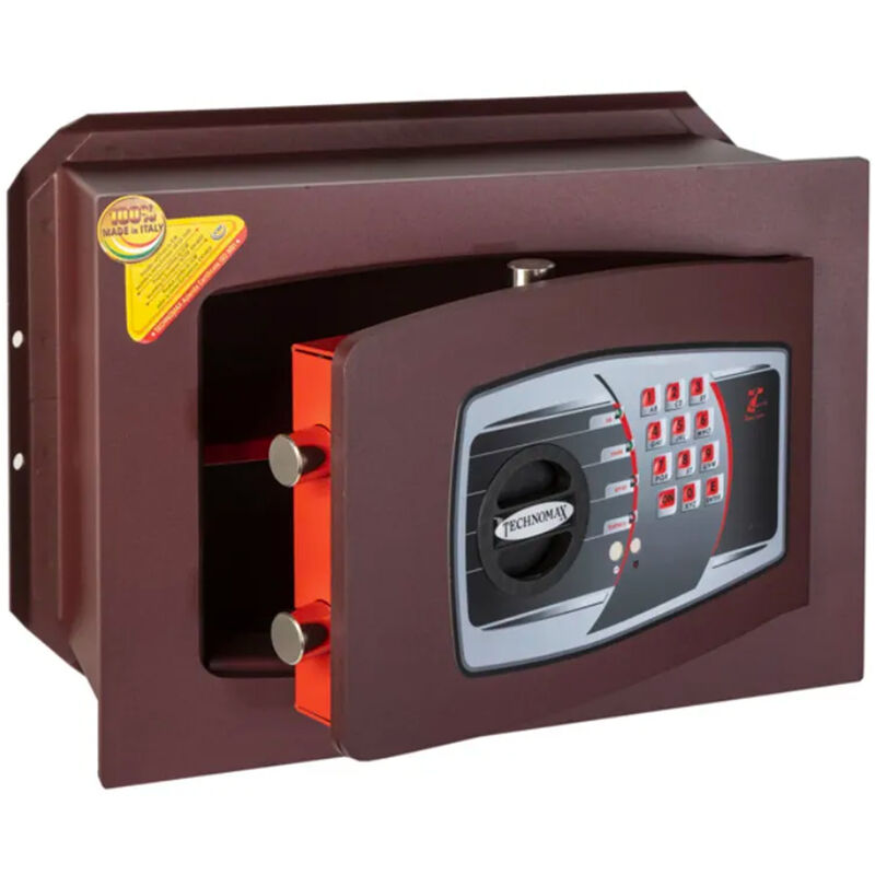 Cassaforte a muro “Master Trony” modello TM/4LP Il modello “TM/4LP” è dotato di serratura per apertura meccanica di emergenza con chiave di alta sicurezza a doppia mappa EVO-LOCK. Caratteristiche tecniche: Serratura certificata UNI EN 1300 controllata da un congegno elettronico ad alta affidabilità, dotato di memoria permanente. Apertura/chiusura con manopola e blocco con elettromagnete. Alimentazione interna con 4 batterie alcaline da 1,5 V. (non incluse). Tastiera a membrana con 4 leds dedicati. Contatti per batteria esterna ricavati direttamente sulla tastiera. Segnalazioni sonore e visive per conferma digitazione, errori e batterie interne in fase di esaurimento. Catenacci in acciaio nichelato, girevoli, del Ø di 22 mm. Protezione al meccanismo della serratura con piastra in acciaio al manganese. Speciali battute della porta per resistere più a lungo ai tentativi di effrazione con mazza. Robuste saldature interne realizzate con sistema robotizzato. Saldatura perimetrale del