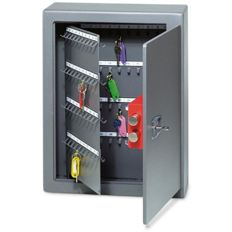 CARATTERISTICHE TECNICHE - Serratura di sicurezza con 6 leve asimmetriche e indipendenti con chiave a doppia mappa. - Estrazione della chiave impossibile a catenacci rientrati. - Catenacci in acciaio nichelato, girevoli, del Ø di 22 mm. - Protezione al meccanismo della serratura con piastra in acciaio al manganese. - Corpo monoblocco saldato e molato con sistemi automatici robotizzati. - Ganci metallici, completi di numerazione adesiva. - 4 fori di ancoraggio sullo schienale e tasselli di fissaggio in dotazione. - Verniciatura a polvere termoindurente con essicazione a forno. - Frontale e Porta 8 mm - Corpo 3 mm - Taglio Laser CK/40: da 40 ganci CK/120: da 120 ganci con bandiera interna