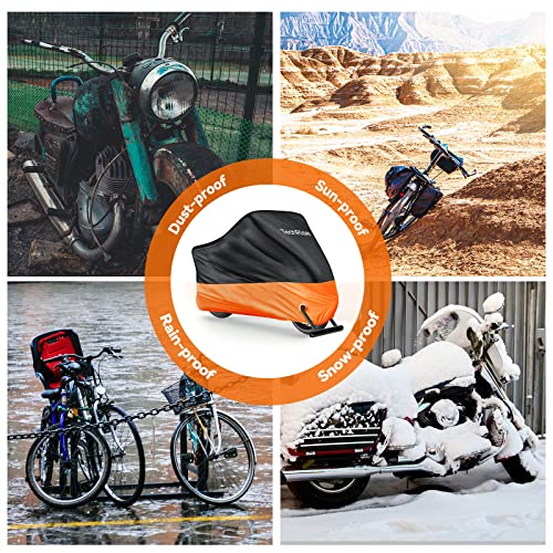 FACILE STOCCAGGIO E TRASPORTO: la confezione include una borsa impermeabile con una corda. Il telo copri bici può essere imballato in un formato compatto che può essere appeso alla bici o messo in un cestino per una facile trasportabilità quando non viene utilizzato.