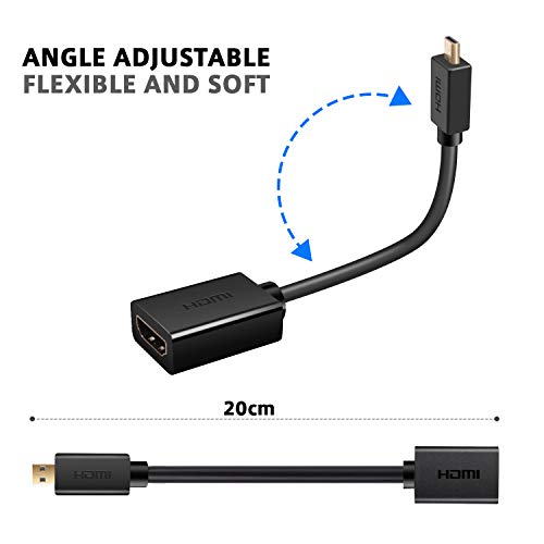 Cavo adattatore Techrum da micro HDMI a HDMI: convertire da micro HDMI (tipo D) a HDMI maschio a "femmina" standard HDMI. Con questo prodotto è possibile guardare video dal vostro Gopro, tablet, fotocamera, laptop sul televisore e godere di un effetto visivo ad alta definizione.