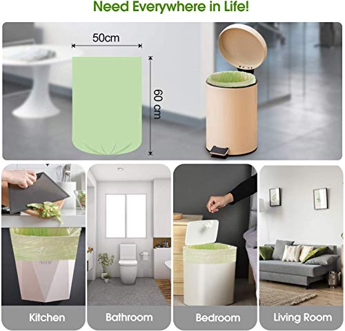 [100 fodere per bidoni della spazzatura] Concentrati sui dettagli: il design a punto di rottura impedisce lo strappo quando si estrae le fodere dei bidoni. Gli angoli sono fermi, resistenti alle forature e a prova di perdite. Una confezione da 100 sacchetti (20 x 5 rotoli) design può essere utilizzato per un mese se una famiglia lo utilizza 3 volte al giorno. È possibile aggiungere questo sacchetto biodegradabile ecologico alla lista di acquisto mensile. Non preoccuparti di dover acquistare un nuovo sacchetto della spazzatura in pochi giorni!
