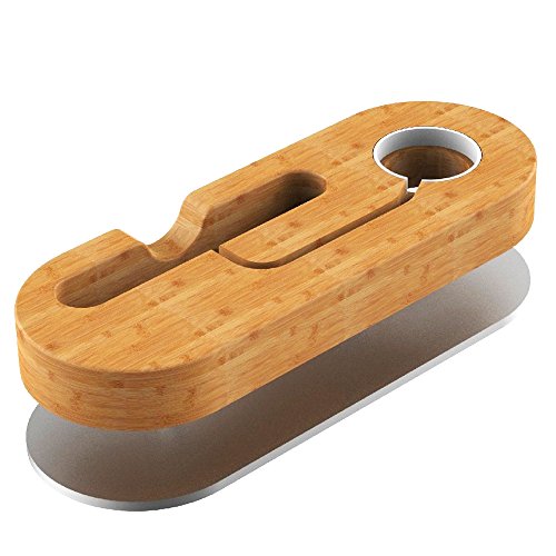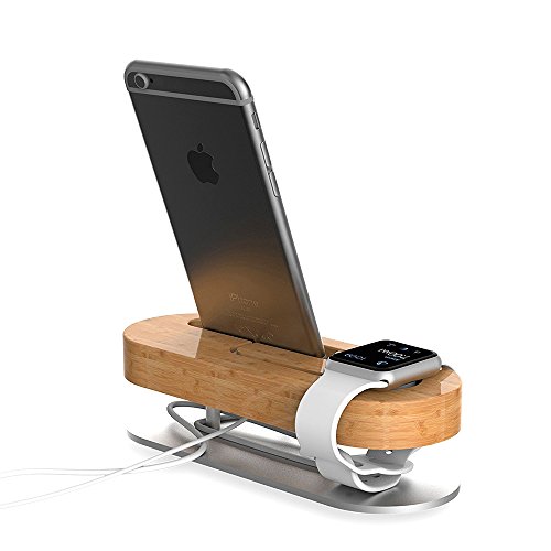 TechVibe - Docking station in legno con stand di ricarica in alluminio per iPhone 7/6s/6/5s, con supporto per Apple Watch di serie 1 e 2 di 38 e 42 mm