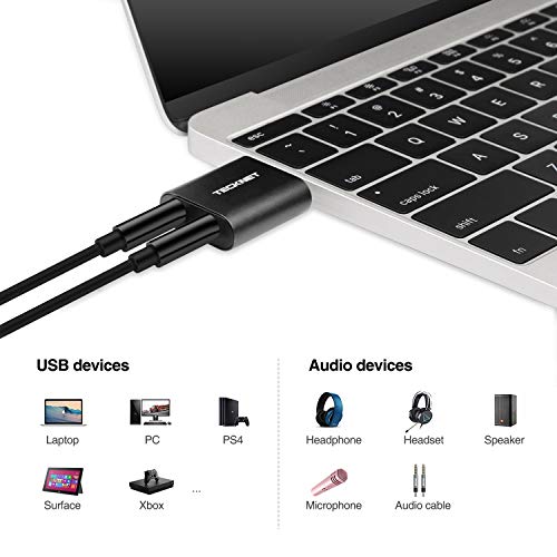 TECKNET Adattatore Audio Esterno, USB Scheda Audio Esterna Stereo for Windows, Mac, Plug & Play