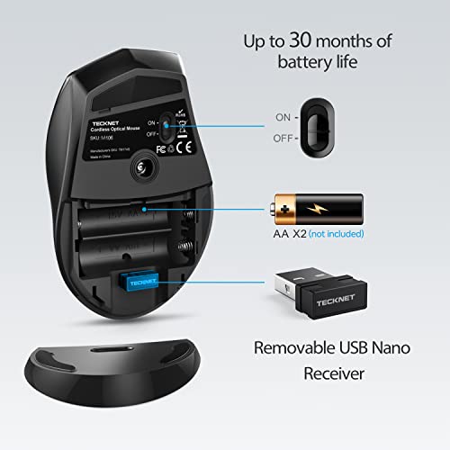 TECKNET Alpha Mouse Silenzioso Wireless, Mouse Ottico Silent Senza Fili 3000 DPI, 30 Mesi di Durata della Batteria, 5 DPI Regolabile, 6 Pulsanti per PC Laptop Computer