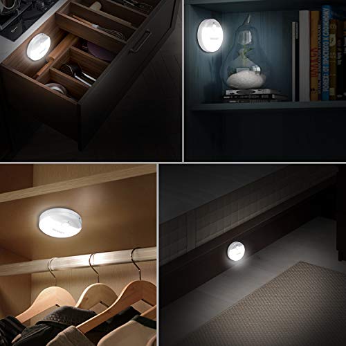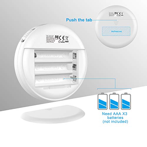 Queste LED luci per la notte utilizzano le batterie al posto della spina, non c'è bisogno di preoccuparsi di occupare una presa di corrente AC. Perfetto per armadi, ripostiglio, corridoio, bagno, camera da letto, soffitta, scala, parete, ecc.