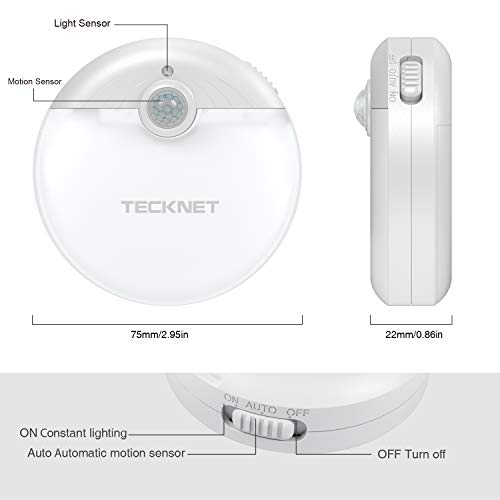 TECKNET Luce Notturna Sensore, Luce Notte Batteria Cameretta da Letto con Sensore Movimento e Luce, 3 modalità di Illuminazione Auto/On/off per Cucina, Corridoio, Muro, Armadio (3 Pezzi)