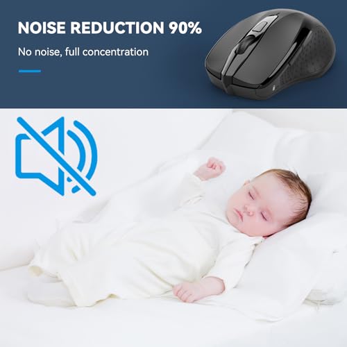 Lunga durata della batteria di 24 mesi e dispone di un indicatore del livello della batteria: questo mouse wireless da ufficio dispone di una modalità di risparmio energetico auto-sleep e interruttore on/off in modo da poter godere fino a 2 anni di carica con 2 batterie AAA (batterie non incluse).