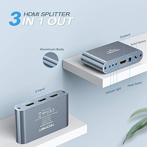 TeckNet? 3 Port Auto Switch Box Plus Remote - 3x1 HUB (3 Way Input 1 Output) 1080p Full HD Switcher