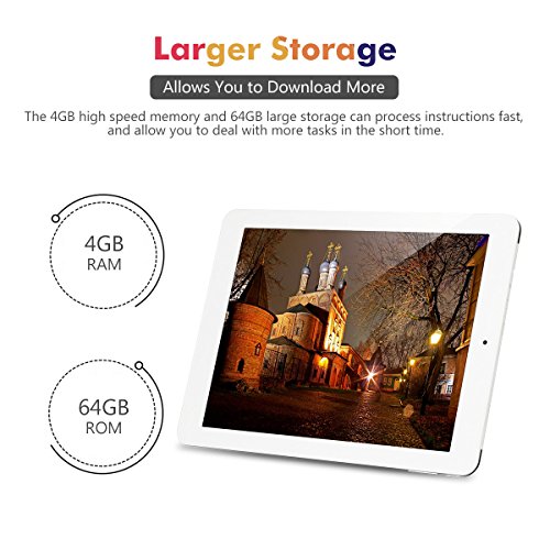 Schermo 9.7 "IPS con risoluzione 2048 * 1536: ampio schermo ad alta risoluzione, troverete l'immagine più delicata e dettagliata, rendendo l'immagine luminosa e vivace. GPU Intel HD Graphic Gen8: l'eccezionale processore grafico ti consente di navigare online e giocare senza buffering.