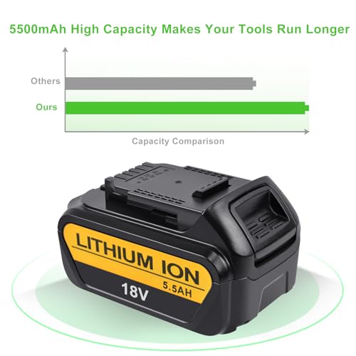 Tecmana 18V 5500mAh Batteria per DeWalt DCB180 DCB181 DCB182 DCB184 DCB201 DCB201-2 DCB200 DCB200-2 DCB204-2 DCB205-2