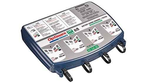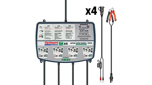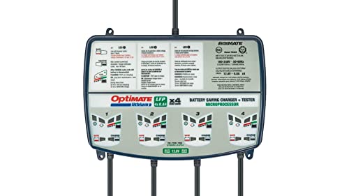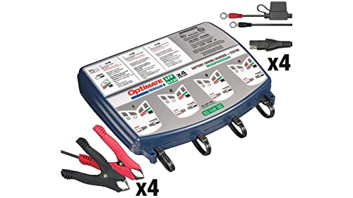Tecmate Optimate Lithium 4s 0.8A Quad Bank, TM-484, Caricatore e mantenitore ermetico di Carica con Recupero di Batteria a Otto Fasi da 12.8 V 0.8 A a Due uscite
