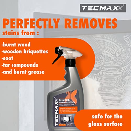 TECMAXX Pulisci Vetro Camino 650ml - Pulizia Vetri Camino - Schiuma di Pulizia per Camino Vetro - Rimuove Depositi di Legno Bruciato e Legna da Ardere in Bricchette