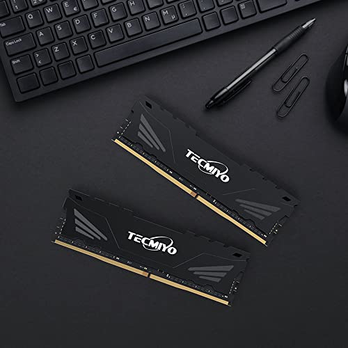TECMIYO Kit da 16 GB (2X8GB) DDR4 3200MHz Udimm Ram PC4-25600 PC4-25600U 1.2V CL22 288 Pin 1RX8 Memorie per Desktop a Elevate Prestazioni Nero