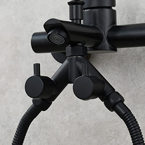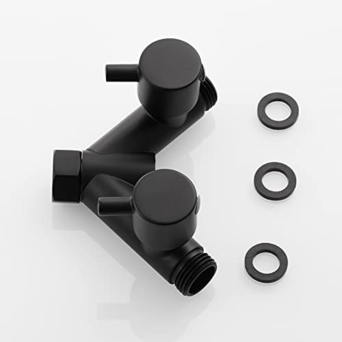 Tecmolog Distributore a 2 vie doccia in ottone valvola di intercettazione Y adattatore raccordo tubo 1/2 pollici per braccio doccia nero, DSF014AB
