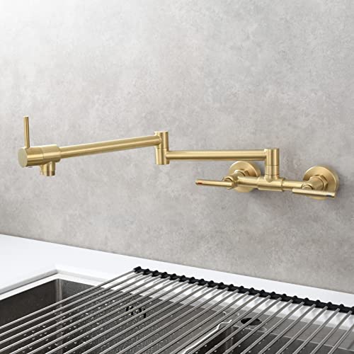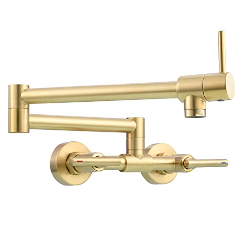 Tecmolog Oro Spazzolato Miscelatore Cucina a Parete Fredda e Calda Regolabile Ottone Rubinetto Lavello Pieghevole Estensibile per Cucina, BJ21243