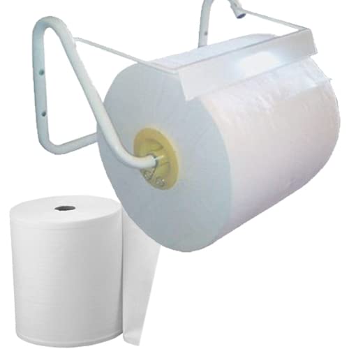 Tecnokit Porta bobina Carta a Muro con rotolo omaggio, per bobine da cm 29,Bianco, Porta rotolo industriale, cm 40x20x23h, Dispenser Bobina a Muro,minuteria per Utilizzo e Montaggio inclusa (Bianco)