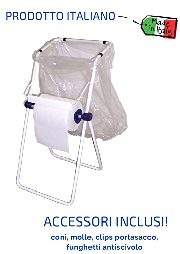 Tecnokit portarotolo industriale maxi, per bobine carta da 40 cm, con porta sacco, rotolo e buste omaggio