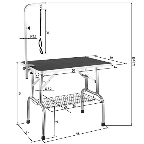 TecTake 402890 - Tavolo da Toelettatura, con Braccio per Cappio e Cestello, per Cani Gatti Animali Domestici