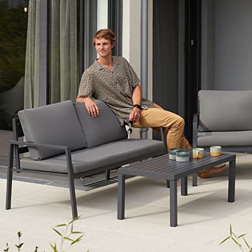 PERFETTO PER ESTERNI: Il solido e inossidabile telaio in alluminio, nonché i materassini idrorepellenti fanno di questo set lounge un arioso soggiorno in versione outdoor.