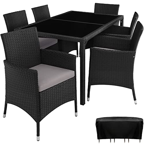 TecTake 800325 Set da giardino in polyrattan, 6+1, Molto pratico, Sedie con piedini in plastica anti-graffio (nero/grigio)